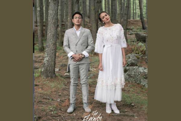 Seperti sedang bermain di kumpulan awan. Begitulah konsep foto prewedding yang dilakukan Roger dan Cut Meyriska. Cinta mereka yang tinggi, setinggi awan di langit serta terlihat lembut seperti awan.